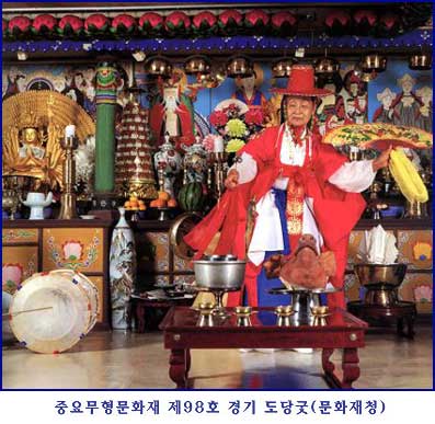 일제강점기에 조선총독부가 호랑이 섬멸작전을 펴기 전에는 이렇게 곳곳에 호랑이가 많았습니다. 그런 까닭으로 도당제를 올렸나 봅니다. 이 도당굿은 경기도에서 가장 많이 볼 수 있는 굿으로 정월과 10월에 마을의 안녕과 집안의 태평을 비손하고 생업의 형태에 따라서는 풍농(豊農)이나 풍어(豊漁)를 기원하며 모두 참여하는 굿인데 무형문화재 제98호로 지정되었습니다. 곳에 따라서 곳창굿, 성황굿이라고도 부릅니다.