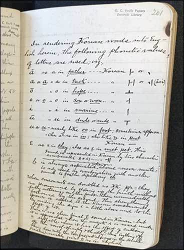 확언할 수는 없지만 조지 포크가 직접 썼을 가능성이 있다. 그는 한국어를 구사하고, 한자와 한문 및 한글을 알고 늘 썼던 첫 미국인이었다. 그의 한글 공부와 한글 필치를 그가 지니고 다녔던 대학노트에서 확인할 수 있다. 이 자료는 현재 미국 버클리대학 도서관에 소장되어 있다.