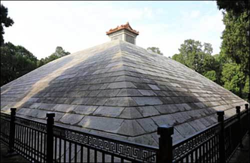 소호릉(少昊陵)과 경령궁유지(景靈宮遺址) : 황제 헌원의 아들로 오제(五帝) 가운데 한 명인 소호 금천씨(少昊 金天氏) 무덤을 찾았다. 무덤으로 오르는 소로가 나 있어 올라가 보았다. 소호릉 바로 앞에 배총(왕릉이나 귀인의 무덤 주변에 주인공을 모시듯 곁에 세워진 작은 무덤)이 있는데, 밑변 28.5m, 높이 8.7m로 비석에는 수구(壽丘)라고 적혀있다. 황제 헌원(軒轅)이 태어난 곳으로 석조 돌무지무덤 형태로 만들어진 무덤으로 '만석산(萬石山)'이라 불린다.