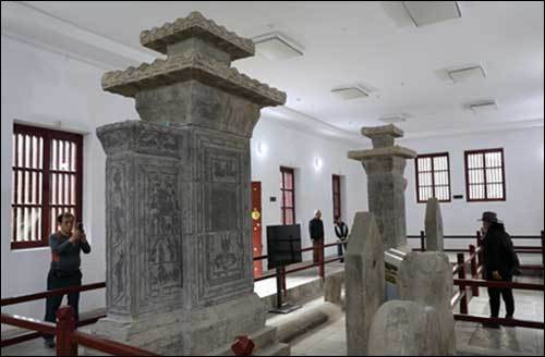 전시실에는 한 쌍의 석궐(좌우 한쌍으로 돌을 쌓아 만든 장식적인 문)과 석사자, 두 개의 비석, 화상석 12점과 후석실 화상석 2점, 16개 등 40여 개의 화상석 조각이 있다. 이곳은 무씨 가문이 제사를 지냈던 공간으로 추정된다.