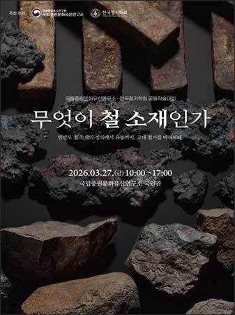 [우리문화신문=한성훈 기자] 국가유산청 국립문화유산연구원 국립중원문화유산연구소(소장 노명구)는 한국철기학회(회장 이남규)와 함께 2026년 3월 27일(금) 아침 10시 국립중원문화유산연구소 국원관에서 『무엇이 철 소재인가?』를 주제로 공동 학술대회를 연다. 이번 학술대회는 고대 철기 제작에 사용된 재료로서의 ‘철 소재’ 개념을 재검토하고, 한반도 고대 유적에서 확인되는 철 소재의 생산ㆍ유통 과정과 자연과학적 분석 성과를 종합적으로 공유함으로써 한반도 고대 철기 문화에 대한 이해를 넓히기 위해 마련됐다.