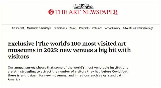 아트뉴스페이퍼에 따르면 “가장 눈부신 증가세는 한국에서 나타났다”라고 평가했다. 특히 “국립중앙박물관은 2024년 380만 명에서 2025년 650만 명으로 70% 이상 급증했으며, 이는 우리가 관측한 사례 가운데 절대 증가 규모 기준으로도 손꼽히는 수준”이라고 분석하며, “진주ㆍ경주ㆍ청주ㆍ부여ㆍ익산에 있는 국립박물관 분관들 역시 의미 있는 증가세를 보였다”라고 덧붙였다. 또한, 국립현대미술관 서울관(MMCA Seoul)은 28% 늘어 210만 명을 기록했다고 소개하고, “전 세계적인 한국 문화에 대한 열기가 나라 안팎 관람객의 박물관 방문으로 이어지고 있다”라고 평가했다.