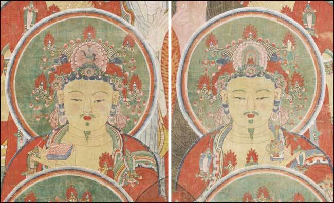 부처와 보살, 제자들의 얼굴에는 전통 채색 기법인 바림(색칠할 때 한쪽을 진하게 하고 다른 쪽으로 갈수록 차츰 엷고 흐리게 하는 일)을 활용해 분홍빛 홍조를 더했다. 부처 얼굴의 경우 붉은색 물감으로 먼저 바림을 한 뒤, 황색 바탕의 피부색을 균일하게 칠하여 양감을 표현했다. 이처럼 바림은 입체감을 느끼게 하는 효과를 주고 있어 마치 살아 있는 부처를 실제로 마주한 듯한 생동감을 구현했다.