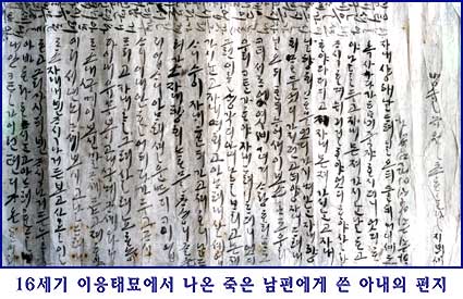 이 글은 16세기 이응태묘에서 나온 순한글 편지(언간)의 일부입니다. 풀어보면