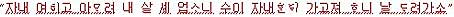 “자내를 여의고 내가 살 힘이 없어서 빨리 자내한테 가고 싶으니 나를 데려가소.”