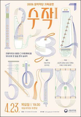 [우리문화신문=정석현 기자] 국립국악원(원장 직무대리 황성운)은 오는 4월 23일 목요일 저녁 7시 30분, 국립국악원 우면당에서 창작악단 기획공연 <수작 Ⅱ>를 선보인다. 이번 공연은 전통 악곡의 이름과 그 ‘아명(雅名, 악곡명을 점잖고 우아하게 바꾸어 부르는 이름)’을 창작 동기로 한 일곱 편의 창작 실내악을 초연하는 무대다.