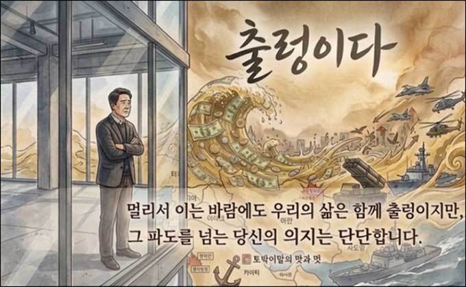 "멀리서 이는 바람에도 우리의 삶은 함께 출렁이지만, 그 파도를 넘는 당신의 의지는 단단합니다."