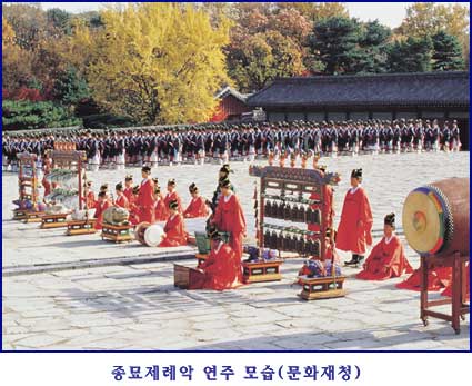 쓰는 것이 어떨지, 그것을 맹사성과 더불어 상의하라.”그런데 세종이 뽑았음은 물론, 당대 최고의 음악가인 박연과 유생들이 반대가 일어났습니다. 하지만, 세종은 이를 무릎 쓰고, 스스로 작곡을 강행하여 마침내 10년 뒤인 1435년 우리 향악으로 된 “보태평(保太平)” 11곡과 “정대업(定大業)” 15곡을 만들어 내는 데 성공합니다. 물론 이 음악은 곧바로 종묘제례에 쓰지 못하고 궁중 연회 때에만 연주했으며, 세조 때에 와서야 겨우 종묘제례에 쓰게 되었습니다. 결국, 우리 음악으로 된 진정한 종묘제례는 세종과 세조의 합작으로 이루어졌습니다.