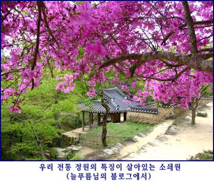자연적이라는 뜻으로 “절로정원”이라는 말로 표현하기도 했습니다.더구나 우리 정원에는 둥글게 가다듬은 향나무처럼 사람이 인공적으로 꾸민 나무는 없었고, 동서남북 각 방향의 기운에 따라 나무를 심었는데 복숭아나무, 매화나무, 대추나무, 살구나무, 사과나무 따위의 과일나무를 심었습니다. 그저 보여주기 위한 것보다는 삶에 도움이 되는 것을 고려한 것이 아닐까요?