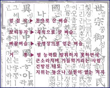 얻은 사람을 조롱하는 말입니다. 그밖에 곡식, 옷감, 은, 돈 등으로 공명장을 사서