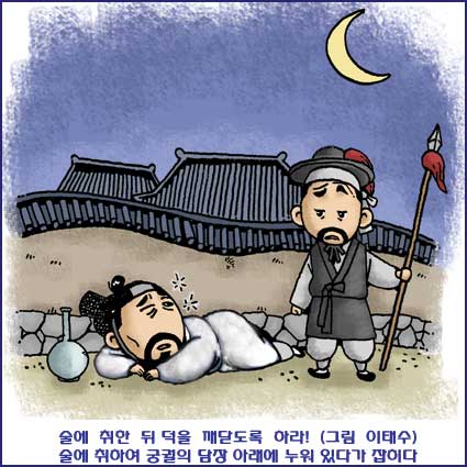 정조실록 44권, 20년(1796) 4월 12일 기사에 보면 술에 취하여 궁궐의 담장