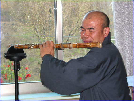 ▲ 대금 삼매경에 깊이 빠진 스님