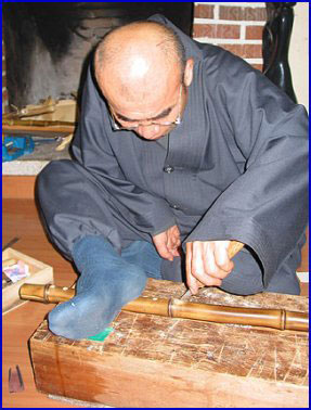 ▲ 대금 만드는 작업에 몰두하는 이삼스님