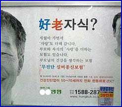 어떤 생명보험회사가 전철에 한 광고에는 “好老자식?”이라는 것이 보입니다. 그 밑에는