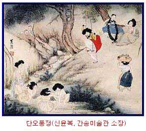 "장장채승(長長彩繩) 그넷줄 휘느러진 벽도(碧桃)까지 휘휘 칭칭 감어 매고 섬섬옥수(纖纖玉手) 번듯 들어 양 그네줄을 갈라 잡고 선뜻 올라 발 굴러 한번을 툭 구르니 앞이 번 듯 높았네 두 번을 구르니 뒤가 점점 멀었다." 판소리 춘향가 중에서 춘향이가 그네 타는 대목입니다. 오늘은 4대 명절의 하나인 단오로 예부터 여성들은 그네를 즐겨 탔고, 남성들은 씨름을 했으며, 여성들은 창포물에 머리를 감는 풍습이 있었습니다. 우리나라는 예로부터 단오절에 '단오제'나 '단오굿' 등의 행사를 하면서 크게 즐겼는데 일본 제국주의의 문화 말살정책과 서양문화, 그리고 상업적인 서양 기념일에 밀려 이제 명맥이 끊길 지경이 되었습니다. 오늘 하루만이라도 고스톱이나 컴퓨터 게임같은 부정적인 놀이가 아니라 전통놀이인 그네나 씨름을 하고, 사랑하는 사람에게 시원한 여름나기를 위해 부채를 선물하면 좋겠습니다.