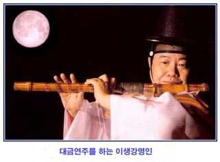 대금은 국악기 중 죽부(竹部:대나무로 만든 대금, 피리, 단소 등의 악기)에 속하는 공명악기(공기를 진동시켜 소리 내는 악기)이며, ‘저’ 또는 ‘젓대’라고도 합니다. 정악만을 연주하는 정악대금(正樂大笒:풍류대금)과 민속악인 산조만을 연주하는 산조대금(散調大笒:시나위젓대)의 두 종류가 있고, 살이 두껍고 단단하며, 양쪽 줄기에 홈이 깊이 팬 병든 대나무인 쌍골죽(雙骨竹)으로 만든 것이 가장 좋다고 합니다. 삼국유사에 이것을 불면 적군이 물러가고 병이 나으며, 바람과 파도가 자는 등 만 가지의 모든 나쁜 일이 물러 난다하여 '만파식적(萬波息笛)'으로 부른 악기가 있었다고 하는데 이 악기가 대금일 것으로 봅니다. “한 가락 젓대를 불어 일만파도 다 눕히면/한라도 구름을 열고 달을 띄워 이더라.”(정완영님의 ‘한라의 달’이란 시 일부) 우리도 젓대소리를 듣고 마음속의 시름을 떨쳐버렸으면 합니다.
