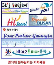서울시청과 강원도청이 영어마을을 만들었으며, 부산, 대구, 인천, 대전, 전남, 전북, 제주 등의 광역자치단체와 수많은 기초자치단체가 영어마을을 준비 중에 있습니다.그런가 하면 각 자치단체들은 영어로 구호를 만들어 홍보하는데 지나칠 정도로 열심입니다. 서울은 ‘HI Seoul', 부산은 ’Dynamic Busan', 대구는 ‘New Start New Daegu', 울산은 ’Ulsan for you', 인천은 'POWER OF INCHEON', 광주는 ‘Your Partner Gwangju'로, 충청북도는 영어를 한글로 써서 ’바이토피아 충북‘을 자랑합니다. 지자체들이 한글에 대한 관심은 없고, 공교육을 살려서 영어를 공부시키는 대신 앞장서서 영어에 몸부림치는 모습을 보면 혹시 지자체는 사대주의 전파단체가 아닌지 모릅니다. 과연 이 나라가 어디로 갈 것인지요?