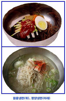 더운 여름철 냉면 한번 먹지 않은 사람이 없을 만큼 예부터 냉면은 인기가 있습니다. 냉면(冷麵)은 ‘동국세시기(東國歲時記)’, ‘진찬의궤(進饌儀軌)’, ‘규곤요람(閨민要覽)’, ‘부인필지(夫人必知)’ 등에 소개가 될 정도이며, 크게 평양냉면과 함흥냉면으로 나뉩니다. 평양냉면은 메밀이 많이 함유된 냉면으로 물냉면이며, 함흥냉면은 감자나 강냉이, 고구마 등의 전분 함량이 많은 냉면으로 비빔냉면입니다.'동국세시기'에는 "메밀국수를 무김치와 배추김치에 말고, 돼지고기 섞은 것을 냉면이라고 한다." 라고 되어 있습니다. 냉면은 손의 온기에도 사리의 맛이 변한다고 하여 나온 직후 빨리 먹을수록 제 맛을 느낄 수 있습니다. 기호에 따라 식초, 겨자를 넣어서 먹어야 그 개운한 맛을 제대로 즐길 수 있으며, 차가운 음식인 냉면에 더운 성질의 겨자를 넣는 음양의 조화는 조상들의 슬기로움입니다.