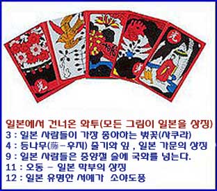 일본에서 고스톱과 비슷한 '고이코이'라는 놀이가 1720년 무렵 생겼다는 문헌이 있다고 합니다. 일본 화투의 대명사인 ‘하나후다(花札)’는 현재 세계적인 컴퓨터게임 제조사 닌텐도가 연간 30만 개 정도 생산하고 있습니다.1930년대 일본에서 살다가 들어온 조선 사람들에게 화투 몇 십 목씩 주어서 보냈다고 증언하는 할아버지들이 있습니다. 그것은 일본이 조선을 완전한 식민지로 만들기 위해 화투로 조선 사람들의 정신을 흐리게 했다는 의심을 받는 근거입니다.