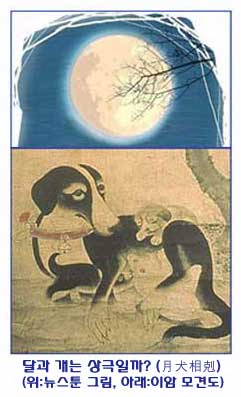 정월 대보름의 세시풍속 중 ‘월견상극(月犬相剋)’이란 것이 있었습니다. 이는 달과 개는 상극이란 생각에서 나온 것인데 정월 대보름날에 개에게 하루종일 밥을 주지 않거나 혹은 저녁밥 한 끼만 주지 않습니다. 개에게 밥을 먹이면 달의 정기를 먹게 되는 것으로 생각했습니다. 여자의 본질인 음력의 에너지원은 달인이어서 개에게 밥을 주는 여자는 개에게 자기의 음력을 도둑질시키는 것으로 본 때문입니다. 월식도 옛사람들은 개가 먹었기 때문이라고 보았습니다. 또 다른 풍속으로 ‘옷동정 버리기’가 있는데 한해 운수가 나빴던 사람이 정월 보름날 저녁에 하는 것입니다. 길거리에 나가 동쪽으로 나이 수대로 걸어가서 자기가 입었던 옷의 동정을 떼어 버립니다. 그리곤 달을 보고 네 번 절을 하면 액을 막을 수 있다고 생각했습니다. 이제는 잊힌 정월 대보름에 했던 우리 겨레의 세시풍속입니다.