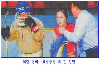 “옥류풍경”은 2000년에 나온 북한 영화로 빙상 무용선수와 옥류관 요리사를 주인공으로 한 영화입니다. 북한에서 빙상 무용선수는 예술가로서 존경을 받는 직업이지만 남자요리사는 ‘국수총각’이니 ‘국수쟁이’니 하는 말로 보듯이 별 볼일 없는 직업으로 인식됩니다. 이 직업에 관련된 갈등과 순애 작은아버지의 반대로 어려움을 겪는 사랑이야기라고 합니다. 이명자씨는 “옥류풍경”이 “그녀를 믿지 마세요.”와는 다른 감정구조를 가지지만 남북한 모두 코믹한 사랑이야기를 좋아한다는 예라고 말합니다.
