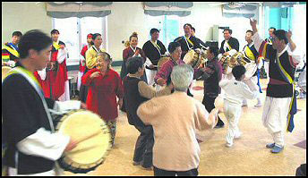 되는 순간이었습니다. 총독부는 왜 우리의 민속놀이를 금했을까요? 그것은 문화를 지배해야 진짜 식민지를 만들 수 있다고 생각한 때문일 것입니다. 또 풍물굿이 갖고 있는 즉, 모여서 자신들의 마음을 하나로 모으는 공동체적 요소 때문에 식민통치를 하는 처지에서 보기에 자신들의 존재기반을 위협하는 것이라고 생각했지 않을까요? 하나 더하면 조선인들에게 정신적 스트레스를 풀어줄 풍물굿이나 민속놀이가 달갑지 않을 수밖에 없었을 것입니다.