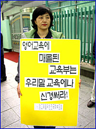교육인적자원부는 최근 초등학교 1학년부터 영어를 가르치기 위한 계획을 하고 있습니다. 이에 교육단체와 한글단체들은 크게 반발합니다. 이들은 초등 1,2학년 영어교육 도입을 즉각 중단할 것과 지금 실사하는 초등학교 영어교육에 대한 전면적인 평가를 실시하고, 공교육 정상화, 우리말 교육의 체계적 실시 방향으로 교육정책을 선회할 것을 주장합니다. 영어 조기교육 토론회에서 토론자들은 "초등학교에 영어교육이 시작된 뒤 아이들은 온갖 스트레스를 받으면서 학교 교육에서 더욱 멀어지고 있으며, 학부모는 더 많은 사교육비에 시달린다. 또 학부모들은 영어 조기교육이 아이들에게 큰 도움을 줄 것으로 생각하지만 이는 착시현상에 불과하다"고 말했습니다. 토론자들은 말합니다. 지금은 영어보다 오히려 우리의 정체성을 찾는 교육에 정성을 쏟는 것이 올바른 세계화라고......