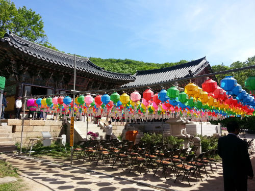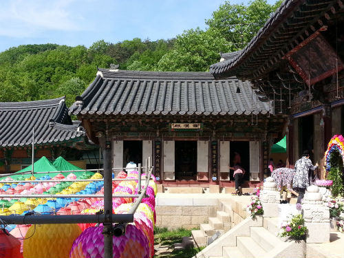 ▲ 흥국사 약사전 앞 부처님오신날 행사 준비 중 |