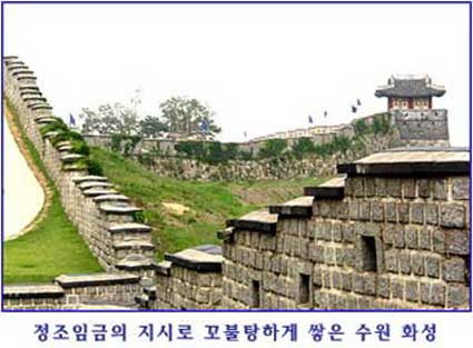 화홍문 등을 일직선으로 만들기로 추진합니다. 수원으로 행차한 정조는 팔달산 꼭대기에