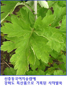 '쑥'은 단군신화를 시작으로 우리 겨레와 함께 해온 식물입니다. 삼국유사 (三國遺事) 에는 "쑥 한 묶음과 마늘 스무 개를 주면서“라는 말이 나옵니다. 이는 곰이 사람이 되기 위해 먹었던 것이 마늘과 쑥이라는 이야기이지요. 단군의 어머니가 쑥을 먹고 사람이 되었으니, 우리 몸에는 쑥의 성분이 흐르고 있는 것은 아닐까요?그런데 그 쑥 중에서도 '사자발'을 닮았다고 해서 '사자발쑥'으로 불리는 쑥이 강화도에 있습니다. 사자발쑥은 '신증동국여지승람에 사자 발바닥 모양 같은 쑥이라는 기록이 있으며, 조선 후기의 의서(醫書) 방약합편(方藥合編)에도 사자발쑥 기록이 보입니다. 이미 조선시대 사자발쑥은 강화도의 특산품으로 인정받고 있었던 것이지요. 학자들의 연구논문에도 이 사자발쑥이 다른 약쑥인 인진쑥, 황해쑥(싸주아리)보다 더 나은 것으로 밝혀집니다.