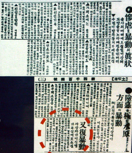 | ▲ 3.1운동 당시 각 지방에서 일어났던 만세시위 속보 | ||