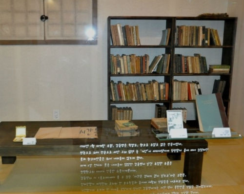 문학관 안에는 대부분의 문학관에서 볼 수 있듯 작가의 일생과 작품에 관련된 이야기들이 글과 사진으로 전시되어 있었고 저서들도 가지런히 진열되어 있었다. “그대는 차디찬 의지의 날개로 끝없는 고독의...”로 시작하는 국민가곡 “수선화”를 비롯하여 “내 마음은 호수여 그대 노 저어 오오...”와 같은 불멸의 시를 남긴 시인임에도 김동명 시인은 작품만큼 이름이 알려지지 않은 시인이라는 느낌이 들었다.