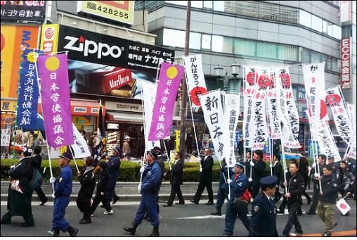 ▲ 2012년 오사카에서 만난 군복을 입은 극우단체들, “천황만세”를 외치는 그들을 보는 순간 섬뜩했다.