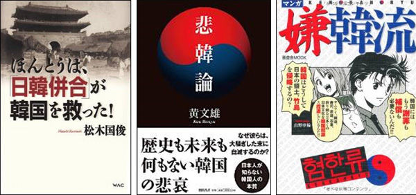 그러나 일본 서점가가에 이렇게 한국을 무시하고 헐뜯는데 혈안이 된 책들이 도배되고 있지만 한국 서점가에서는 반일(反日)책이 잘 눈에 띄지 않는다. 또 이러한 일본 내의 혐한((嫌韓)분위기에 편승해 일본 출판계가 재미를 보고 있는 상황에 대해 한국사회는 거의 침묵하고 있으며 한술 더 떠 무라카미 하루키와 같은 일본작가들이 쓴 베스트셀러 책을 하나라도 더 팔기 위해 안달인 모습을 보면서 씁쓸한 마음을 지울 수 없다.