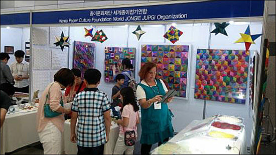 종이문화재단 부설 한국수학종이접기협회(회장 오영재)가 운영하는 체험부스에서는 '종이접기로 파헤친 수학의 세계, 세팍타크로 공만들기'를 체험하고자 하는 학부모와 아이들로 붐볐다.