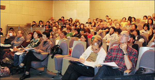 ▲ 여성독립운동가에 대한 이야기를 열심히 듣고 있는 일본유학생들(2014.12.8, 한국외대)
