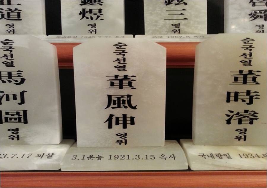 ▲ 서대문형무소에 수감 되어 17살로 순국한 동풍신 열사 위패(서대문독립공원 내 순국선열위패봉안관)