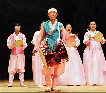 | ▲ 중요무형문화재 제19호 선소리 산타령 보유자 황용주 명창의 공연 모습 | ||