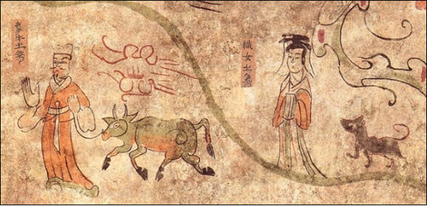 북한의 덕흥리 고분에는 ‘견우와 직녀’ 벽화가 있습니다. 은하수를 사이에 두고 견우는 염소만 한 크기의 소를 끌고 견우성을 향하여 떠나고, 직녀성이 자미원 밖에서 견우를 배웅하는 고구려시대 천문도를 의인화한 그림입니다. 이 그림으로 미루어 우리는 고구려 때도 칠석날을 지냈음을 알 수 있지요.