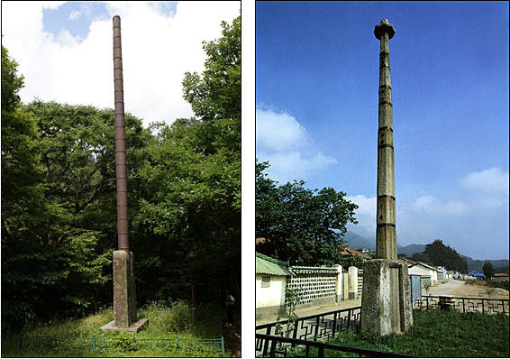 | ▲ 공주의 보물 제256호 갑사철당간(甲寺鐵幢竿, 왼쪽), 나주동문밖석당간(羅州東門外石幢竿, 보물 제49호) | ||