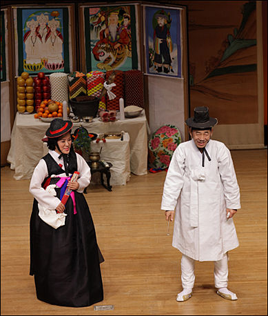 | ▲ 경서도민요를 부르는 백영춘 명인과 최영숙 명창 | ||