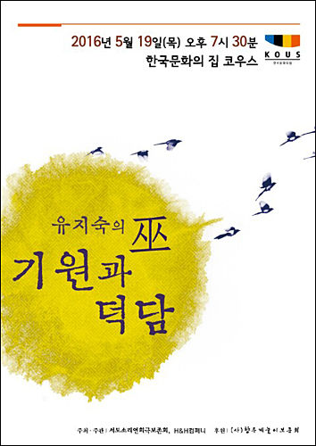 서도소리연희극보존회, HnH컴퍼니 공동주최와 (사)향두계놀이보존회 후원으로 오는 5월 19일(목) 저녁 7시30분 서울 삼성동 한국문화의집 코우스에서 “유지숙의 무(巫), 기원과 덕담” 공연을 연다.
