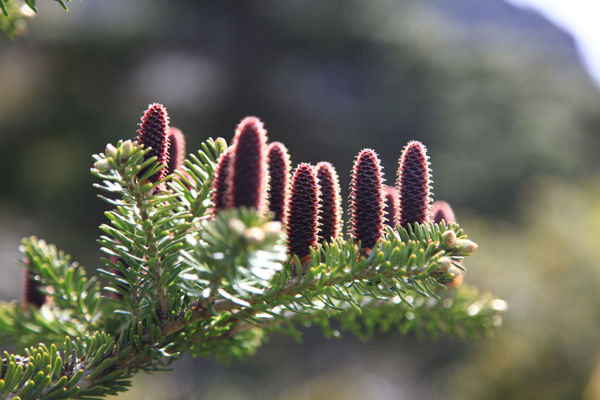 | 남벽분기점으로 가는 길에 만난 구상나무 솔방울이 자주빛 꽃을 피우고 있다. | ||