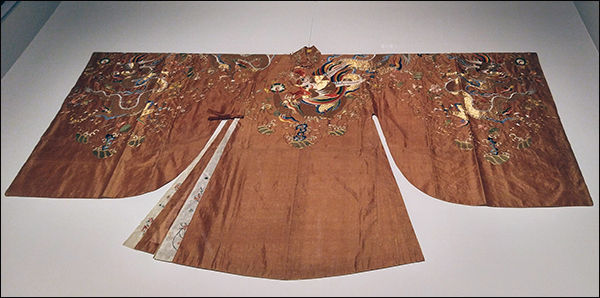 명대의 복식은 소매가 넓고 품이 큰 한족 옷의 특징을 잘 보여주며, 아름다운 자수와 다양한 직조 공예로 중국 복식사에서 화려한 꽃을 피웠다. 청 왕조는 전국을 통일한 후, 품이 넓은 옷에 큰 소매 형태의 명재 복식을 폐지했다. “의관은 모두 만주족의 제도에 따른다.”는 원칙 아래 몸에 꼭 맞고 소매가 좁은 만주족 복식을 널리 시행했다.