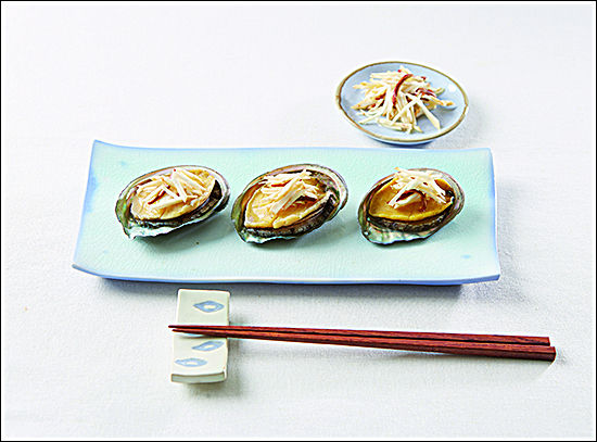5. 찜기에 전복을 얹어 중간 불로 5분간 찐다.