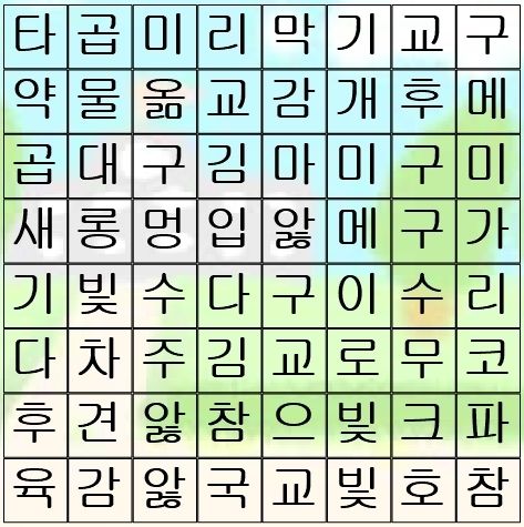 지난 한날(월요일)부터 '토박이말 살리기'에서 알려드린 토박이말과 '새해 맞이 토박이말 잔치'와 '옛배움책에서 캐낸 토박이말'들을 모아 '토박이말 찾기 놀이'를 만들어 보았습니다. 갑작추위(한파)와 빛무리 한아홉(코로나 19) 때문에 집 안에만 계신 분들의 심심풀이가 되었으면 하는 바람입니다.