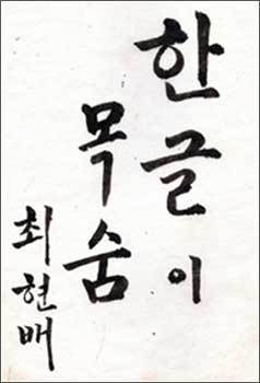 일제강점기 때 조선어학회 사건으로 4년 동안이나 옥고를 치르시고 광복 뒤 문교부(지금의 교육부) 편수국장에 두 차례 지내시면서 각종 교과서에 한글만으로 가로쓰는 체재를 확립한 외솔 최현배 선생은 일제강점기 한 음식점의 금서집(錦書集, 방명록의 하나)에 “한글이 목숨”이라는 글을 써놓을 만큼 한글에 목숨을 건 분이었습니다. 그렇게 한글을 지키기 위해 목숨까지 내놓았던 외솔 선생께 참으로 죄송한 마음뿐입니다.
