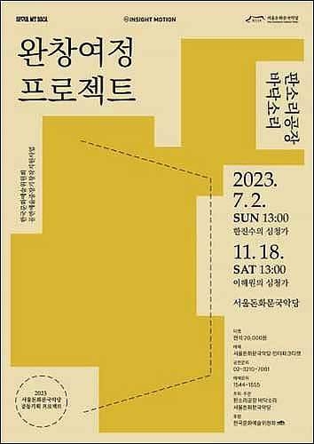 [우리문화신문=정석현 기자] 서울 종로구 율곡로 서울돈화문국악당은 오는 11월 18일(토) ‘서울돈화문국악당 2023 공동기획 프로젝트’의 하나로 판소리공장 바닥소리 <완창여정프로젝트 : 이해원의 심청가>를 선보인다.