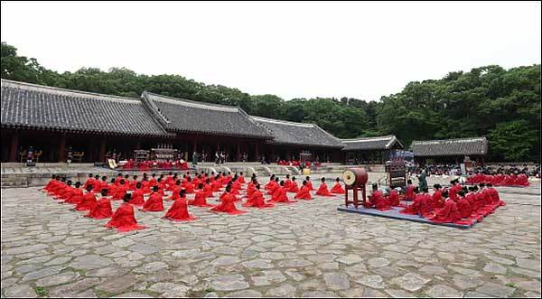‘종묘대제(宗廟大祭)’는 《국조오례의(國朝五禮儀)》에 포함된 길례(吉禮)에 속하는 의례로, 임금이 직접 거행하는 가장 규모가 크고 중요한 제사다. 1969년 복원된 이래로 현재까지 그 명맥을 이어오고 있는 무형유산으로, 왕실의 품격 높은 의례와 무용, 음악이 어우러진 종합적인 의례로 그 문화적 값어치를 인정받아 2001년 유네스코 인류무형문화유산 대표목록으로 올랐다. 2006년부터는 나라 안팎 손님을 초청한 국제행사로 진행되며 전 세계인들의 관심을 끌고 있으며, 해마다 5월 첫 번째 일요일에 유교사회에서 기준이 된 예법의 절차를 엄격하게 지켜 웅장함과 엄숙함이 돋보이는 의례로 진행된다.