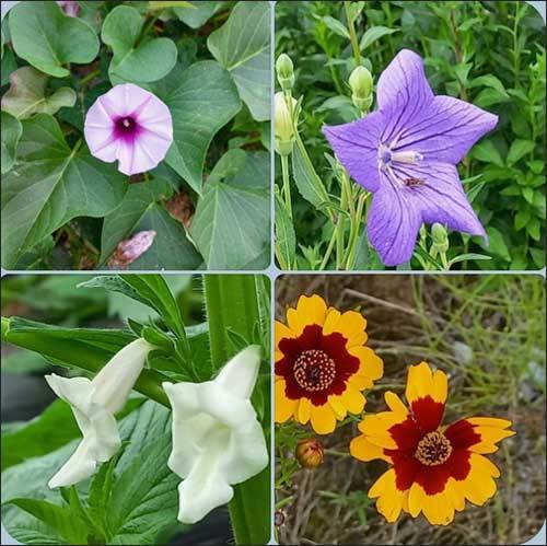 전원주택의 마당에는 예쁜 꽃들이 피어있다. 이날도 송향섭 선생이 여러 가지 풀꽃의 이름을 많이 알려주었다. 고구마꽃은 이날 처음 보았다. 원래 한반도에서는 고구마꽃을 보기 힘들었다고 한다. 그 때문에 고구마꽃이 피면 방송이나 신문에 보도가 되기도 했단다. 최근에 지구온난화로 한반도가 아열대로 변하면서 고구마꽃을 본 사람이 늘어나고 있다고 한다. 열대 지방인 중남미가 원산지인 고구마는 연중 날씨가 따뜻한 중남미 현지에서는 꽃을 잘 피운다고 얘기해준다. 고구마꽃의 꽃말은 행운이다.